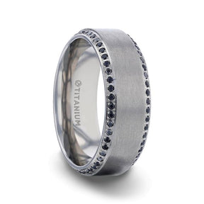 CHAMPION Flat Brushed Center Titanium Men's Wedding Band with Black Sapphire Polished Beveled Edges - 8mm