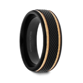 8mm Black Titanium Diamond Patterned Brushed with Gold Milgrain Grooves