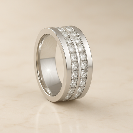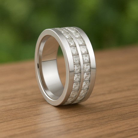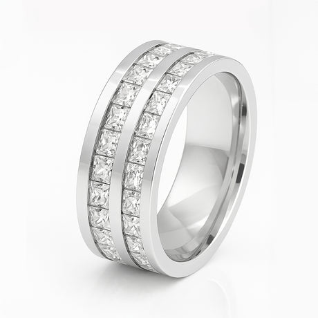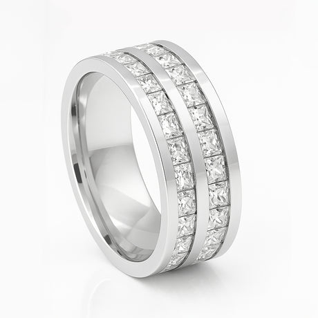 8mm - Mens Silver Titanium Double Row Princess Cut Unplated Ring