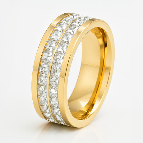 8mm - Mens Yellow Gold IP Plated Titanium Double Row Princess Cut Ring