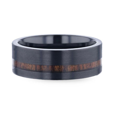 4mm - Blue Stripe Titanium Wedding Band with Blue Sapphire