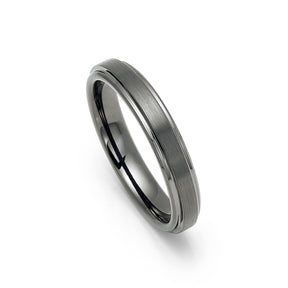 4mm Gunmetal Tungsten Carbide Wedding Band with Stepped Edges