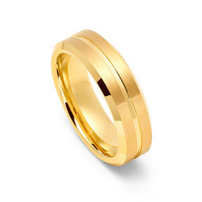 6mm Gold Tungsten Wedding Ring Center Grove Brushed W/ Beveled Edges