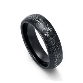 6mm Mens Black Tungsten Carbide Ring W/ Meteorite Inlay Domed Ring