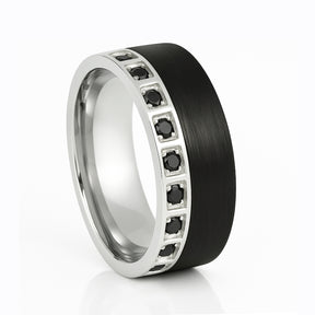 8mm - Black Brushed Tungsten Carbide Wedding Ring Silver W/ Black CZ Diamonds