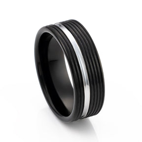 8mm Black Tungsten Carbide Wedding Band W/ Silver Brushed Groove