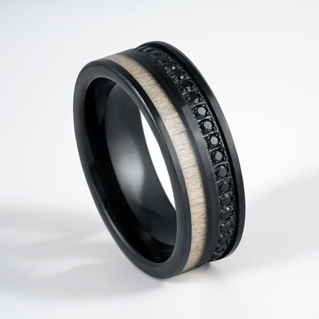 8mm - Black Tungsten Ring with Black CZ Eternity & Wood Inlay