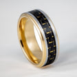 8mm - Gold Tungsten Ring with Black & Gold Carbon fiber Inlay