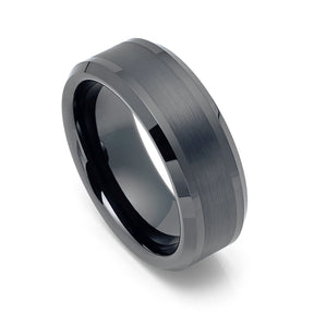 8mm Gunmetal Tungsten Carbide Wedding Ring with Brushed Center Beveled edges