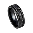 8mm- Mens Tungsten Ring Black Brick Pattern Brushed Sectional Diamonds