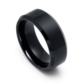 8mm - Mens Tungsten Wedding Band, High Polished Center, Beveled Edges