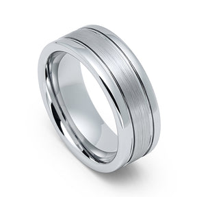 8mm - Mens Tungsten Wedding Ring, Polished Double Groove, With Brushed Center