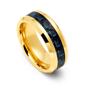8MM Gold TUNGSTEN Carbide RING WITH BLUE CARBON FIBER INLAY