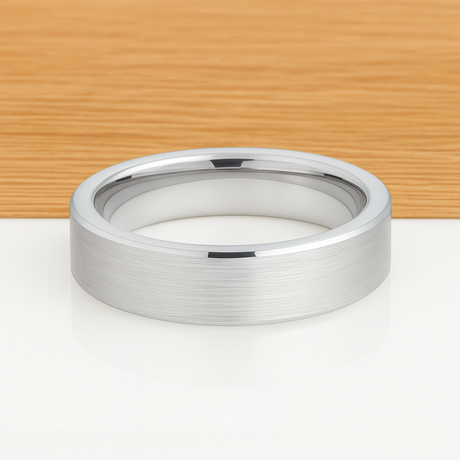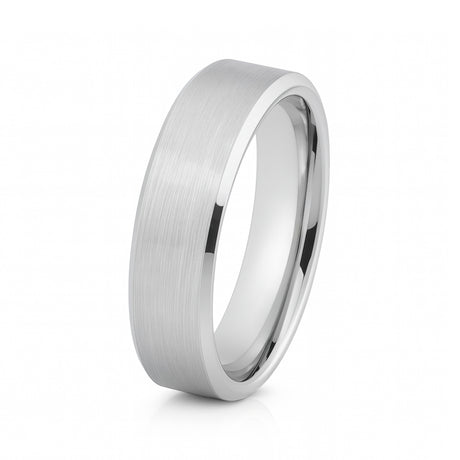 White Silver Platinum-Like Finish Tungsten Ring with Brushed Center and Polished Beveled Edges-6mm