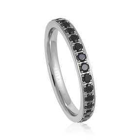 Silver Titanium Ring Full Eternity Black Cubic Zircon Diamonds 3mm