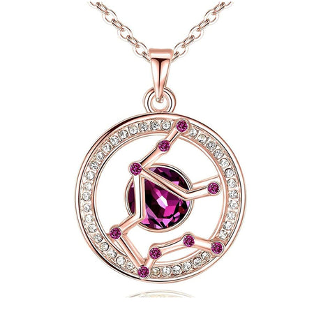 Aquarius Rose Gold Zodiac Constellation Pendant Necklace Made with Premium Crystal Horoscope Jewelry