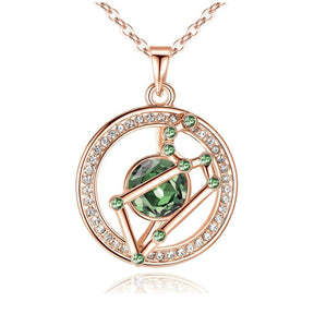Leo Rose Gold Zodiac Constellation Pendant Necklace Made with Premium Crystal Horoscope Jewelry - Rose Gold Birthstone Peridot Green / Leo is backordered and will ship as soon as it is back in stock.