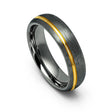 6mm - Tungsten Gun Metal Ring, Brushed Off-Center 18k Gold Grooved Ring