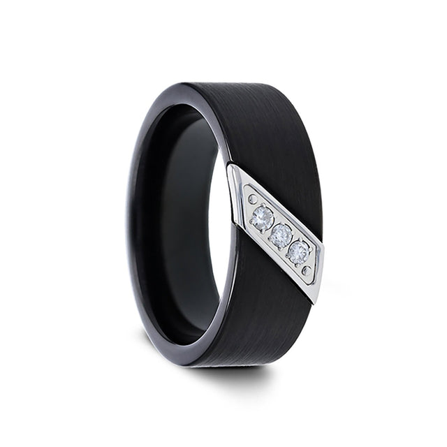 8mm Black Tungsten Wedding Band with Diagonal Diamonds