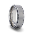 CHAMPION Flat Brushed Center Titanium Men's Wedding Band with Black Sapphire Polished Beveled Edges - 8mm