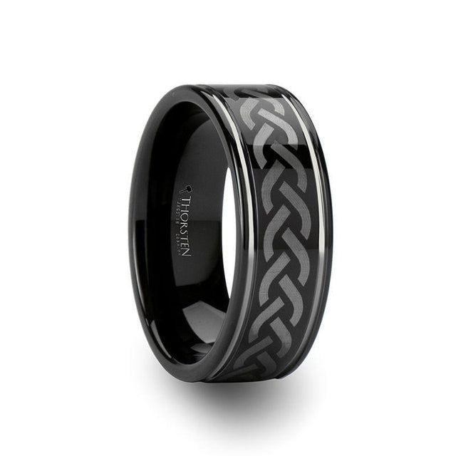 KILMORE Black Tungsten Ring with Laser Engraved Celtic Pattern - 8mm