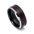 8mm - Red Tungsten Wedding Band Ice Finish With 2 Red Stripes Ring