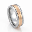 8mm - Silver Tungsten Wedding Band Rose Gold Brush Grooved Center,