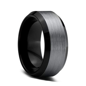 10mm- GunMetal Tungsten Carbide Wedding Band with Black Beveled Edges Brush Center - 6.5 / Black & Gunmetal / Tungsten Carbide is backordered and will ship as soon as it is back in stock.
