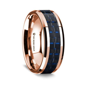 14K Rose Gold Beveled Edges W/ Black & Dark Blue Carbon Fiber Inlay - 8mm
