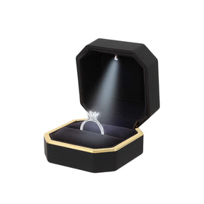 LED Light Ring Box Engagement Ring Case Velvet Jewelry Gift Box Case Ring Holder Black