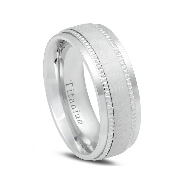 Men's Silver Titanium Ring With Milgrain Stepped Edges And Brushed Center - 8mm