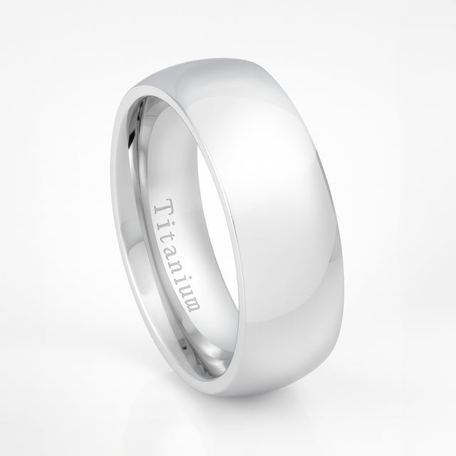 Men's Silver Titanium Wedding Band Polished Dome Ring - 8mm