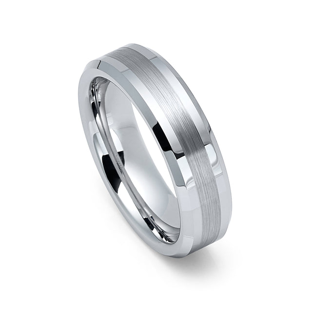 6mm - Silver Tungsten Wedding Band, Brushed Center Finish, Silver Tungsten Ring,